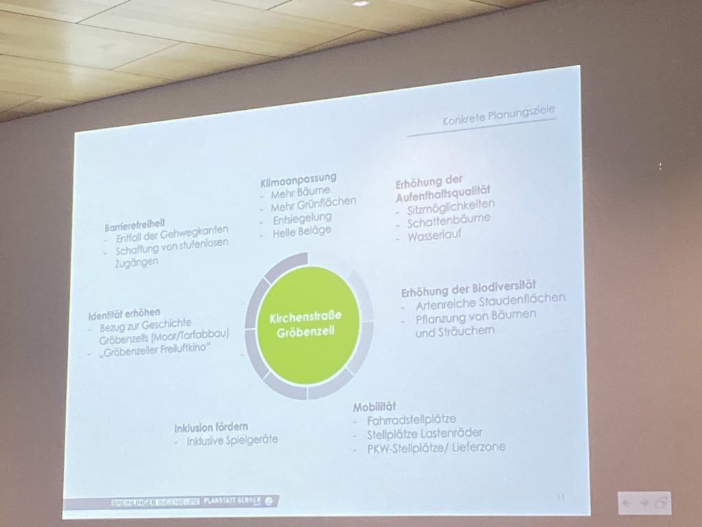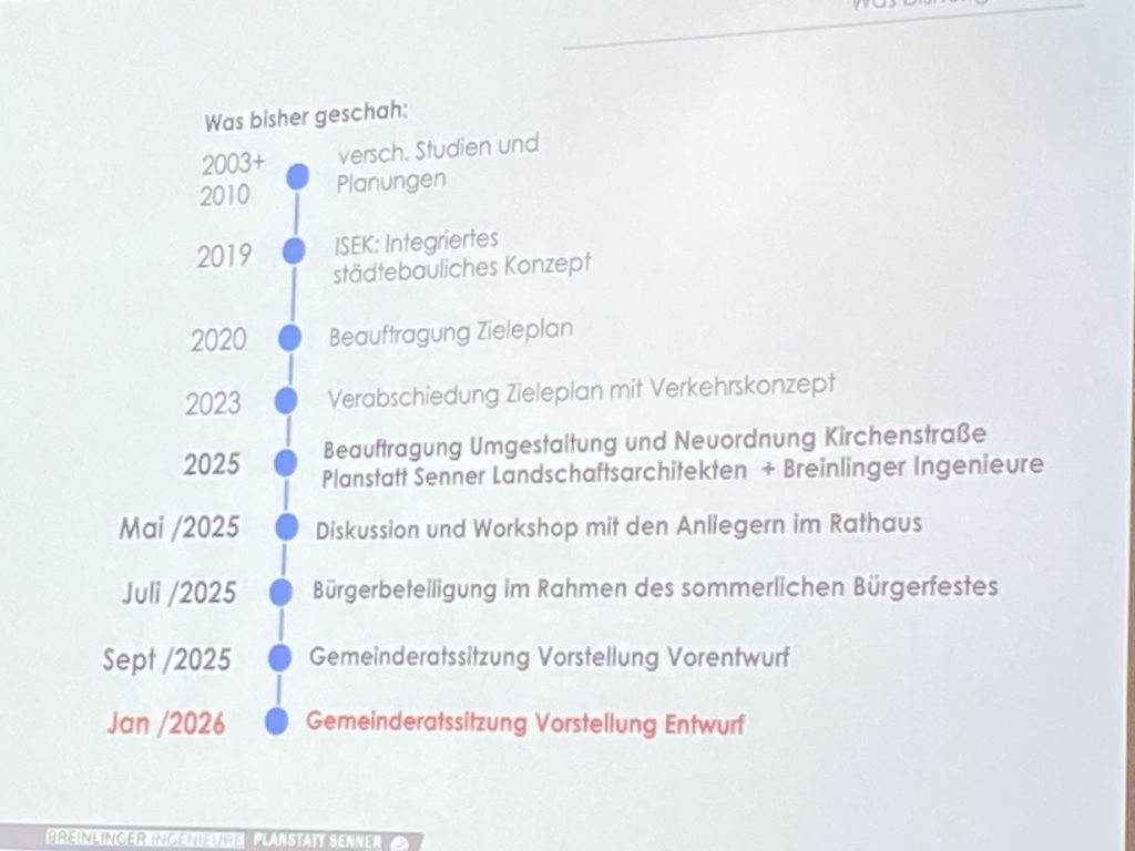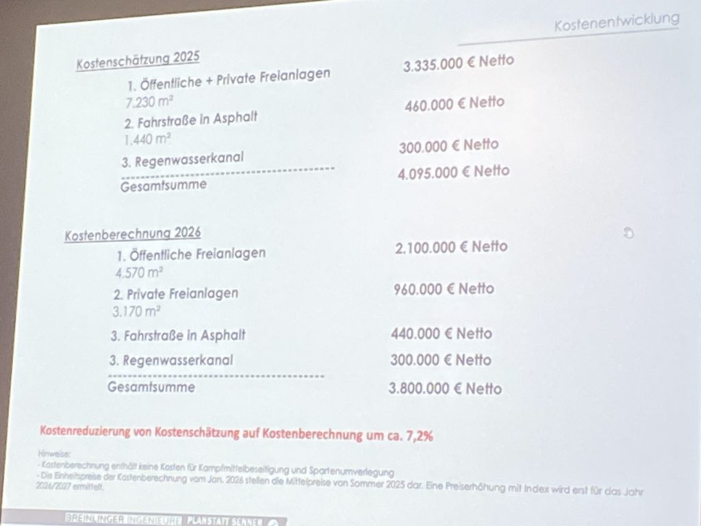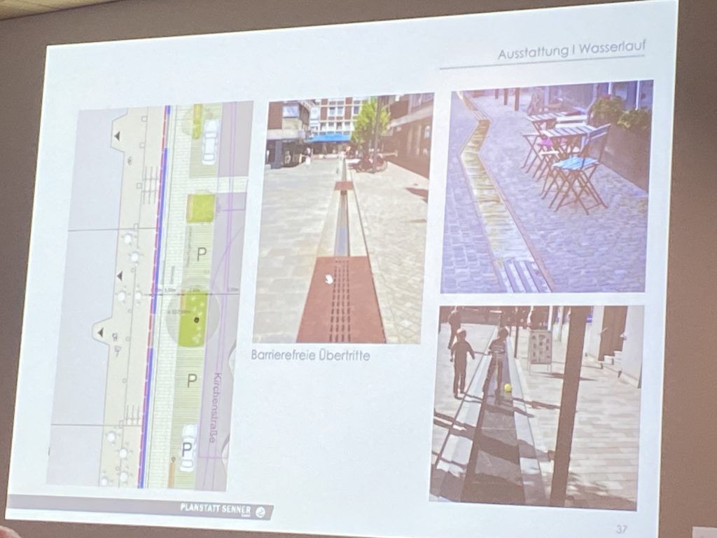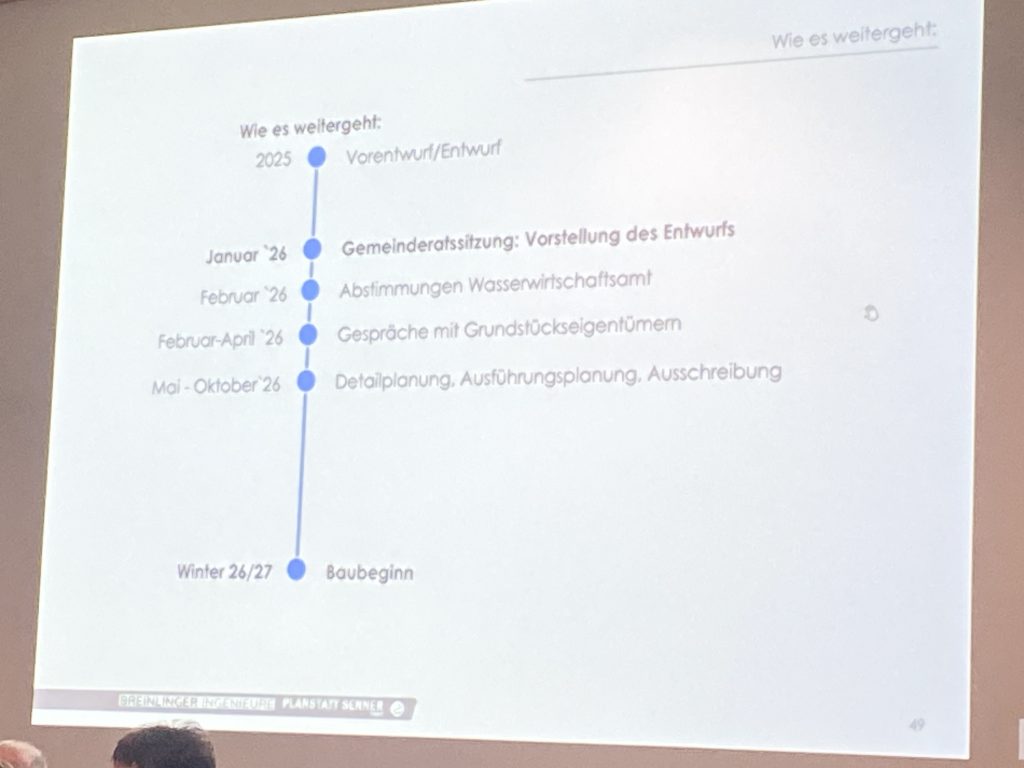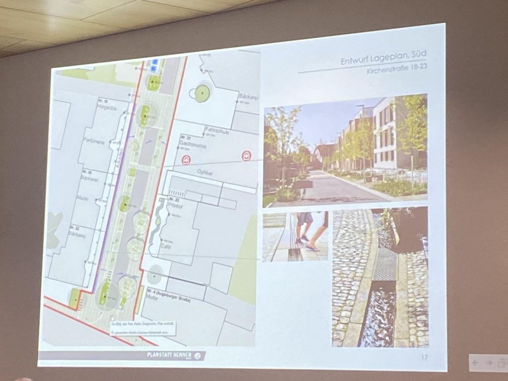 In der heutigen Gemeinderatssitzung stellte das Planungsbüro den aktuellen Entwurf für die Neu- und Umgestaltung unserer ‚Zentrums‘-Straße vor. Nach der Sitzung am 18.09.2025, in der der erste Entwurf vorgestellt wurde, hatten die Fraktionen die Möglichkeit noch Wünsche und Anregungen einzubringen. Diese hat das Planungsbüro nun in deren aktuellen Entwurf eingearbeitet. So sind mehr Bäume, weniger Parkplätze, ein Bachlauf und weitere Wasserinstallationen geplant. Die jetzige Planung beläuft sich nur auf den Straßenraum, der im Besitz der Gemeinde ist. Der Bereich der Gehsteige liegt großteils in privater Hand. Dies wird dann der nächste Schritt sein. Von Februar bis April wird mit allen Eigentümern ins Gespräch gegangen inwieweit diese sich an der neuen Planung der Straße anschließen würden. Uns stimmt es positiv, dass in Aussicht steht, dass 2/3 der Kosten der Neugestaltung von Bund und Land übernommen werden. Hier ist es auf jeden Fall in unserem Interesse, dass wir Fördermittel des Programms ‚Klima wandel(t) Innenstadt‘ erhalten, was als Bedingung für eine Förderung viel Grün und viel Wasser zur Erhöhung der Aufenthaltsqualität vorsieht. Nach ca 3 Stunden Wortbeiträgen und Präsentation und 21:6 Stimmen für einen Wasserlauf, bekam die Planung eine einstimmige Zustimmung, was für ein positives Zeichen! Wir bleiben dran und werden uns weiterhin für diesen Prozess einsetzen, damit es ENDLICH in eine Umsetzung kommen wird (Stand heute ist der Plan hierfür Winter 26/27)